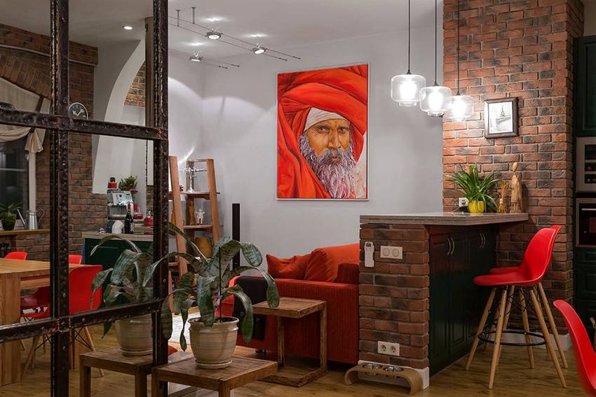 Украшением в помещении лофт может быть необычная — мебель, статуэтки или картины
