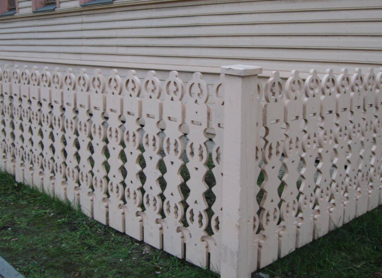 Это ограждение относится скорее к украшению, чем непреступной преграде. Для основного забора этот вид не подходит, его функциональность слишком низкая. Чаще его применяют как внутреннее ограждение для палисадника или зонирования участка, как опора для плетущих садовых насаждений. Вопреки ожиданиям стоимость такого варианта высокая из-за цены сырья.