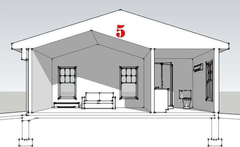 Также с помощью прозрачных или полупрозрачных стен Вы быстро разделите жилое пространство на несколько уютных зон: душевая комната, гостиная и кухня. При этом всю заднюю сторону можно будет переоборудовать в спальню.